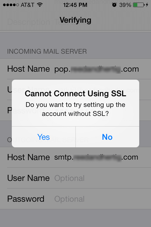 Step5: You will see a screen that will prompt you to attempt to connect without SSL, select Yes.