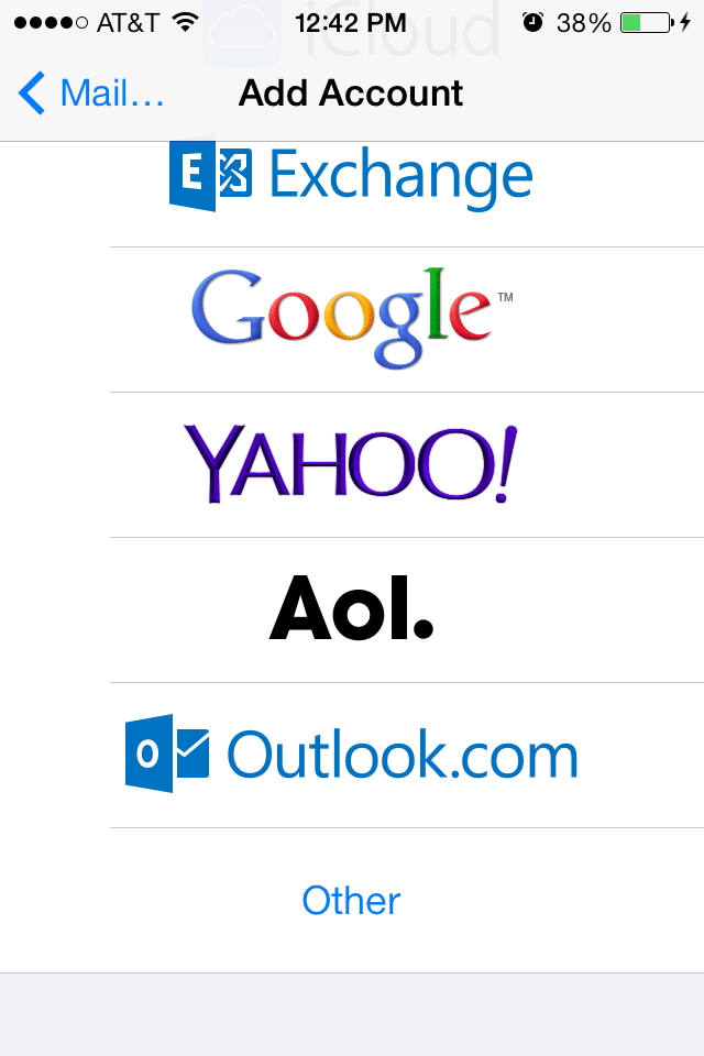 Step2: In the Add Account screen select Other.