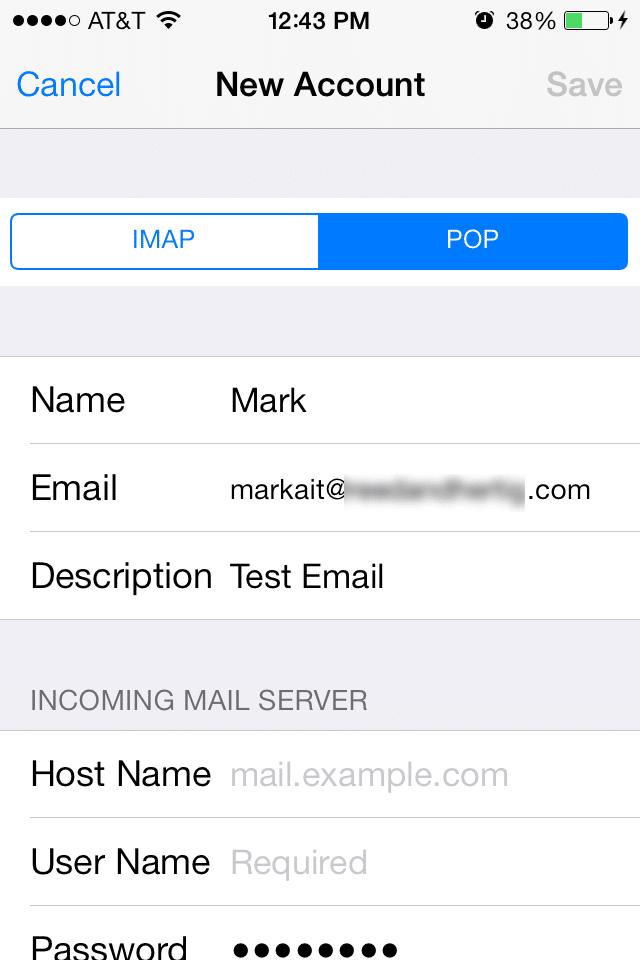 Step4: In the New Account section your iPhone will automatically try to set this up as a IMAP account but you will need to set this up as POP by selecting POP in the menu screen. You should not have to reenter your information.