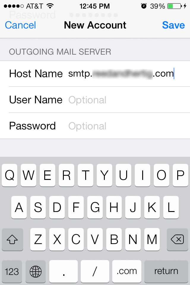 DO NOT enter your username and password for Outgoing Mail Server, your host name will be the domain associated with your email account with smtp. in front of it.