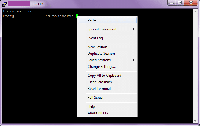 Important Tip: As a security measure, PuTTY does not show your password as you’re typing it. To paste your password, press “CTRL” + “Right Click” to paste it from the clipboard then hit “Enter”.