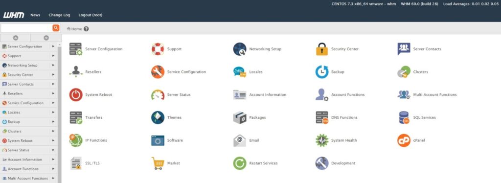 You will now see the WHM homepage: