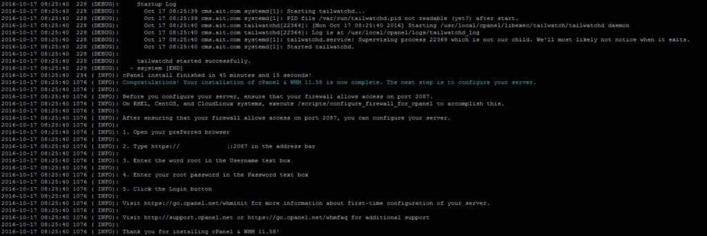 Once the installation script is finished, you will see the following script: