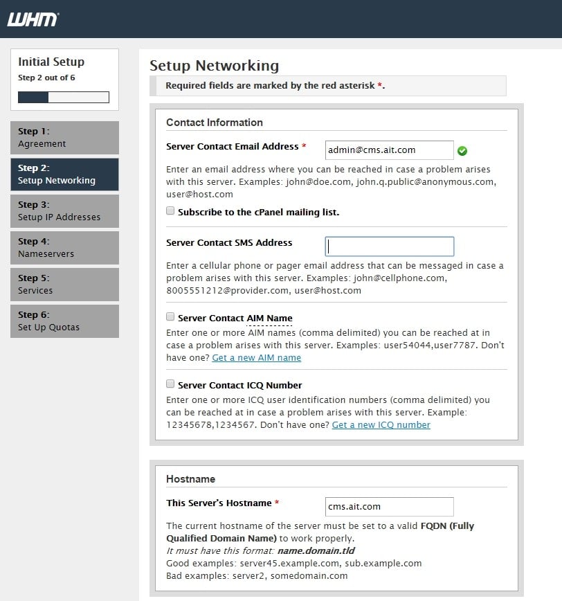 Step 4: Setting up WHM.